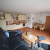 Sie hat eine hochwertig, ausgestattete Küche (mit Geschirrspüler, Microwelle etc) sowie einer bequemen Essecke.