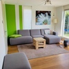 Das Wohnzimmer ist ausgestattet mit einem 65" Smart TV, Soundbar und WiiU Spielekonsole sowie einer gemütlichen großen Couch, einem Sessel und geschmackvollen Schränken. Das Haus ist mit WLAN (Internet) ausgestattet.