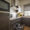 Voll eingerichtete Küche (Koch- und Essgeschirr, Herd, Mikrowelle, Backofen, Kaffeemaschine, Wasserkocher, Toaster, Kühlschrank mit Gefrierfach, Geschirrspüler etc.)