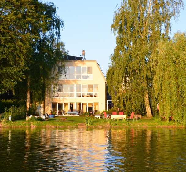 Alle Räume verfügen über eine Fußbodenheizung, die Fußböden sind mit keramischen Platten belegt. Die Panoramaverglasung und der weite Uferbereich erlauben eine attraktive Sicht auf die Landschaft.
