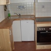 Elektroherd, Kühlschrank, Tiefkühlfach, Mikrowelle, Kaffeemaschine, Toaster, Besteck, Gläser
