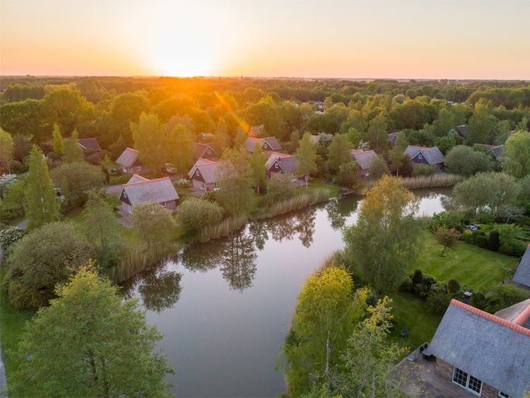 Ferienpark De Weerribben in Niederlande, bietet 80 geräumige, freistehende 4, 6 oder 8 Personen Ferienwohnungen, ein Restaurant, Hallenbad, Padelplatz, Fischen im See und Kinderspielplatz.