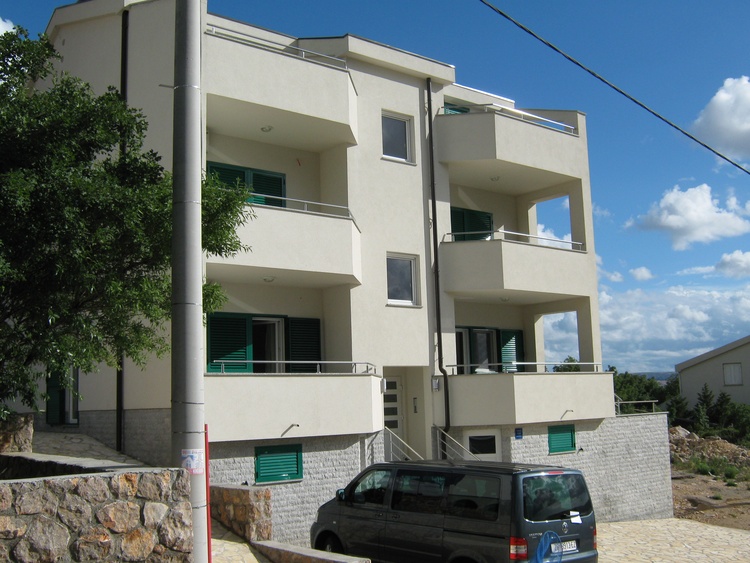 Apartment hat einen Balkon mit super Blick auf die Insel Pag und das Gebirge Velebit