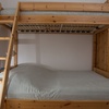 ein Schlafzimmer mit Doppelbett 1.80m mal 2m, Wandschrank; ein Zimmer mit Etagenbett: unten 1.40 mal 2m, oben 0,90mal 2m.