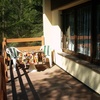 Vor dem Haus befinden sich zwei Terassen mit Gartenmöbel und kleinem Grill.