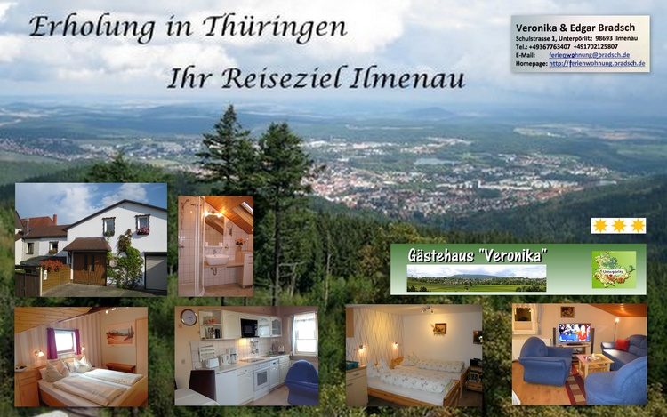 Unterpörlitz liegt 2 km nördlich vom Ilmenauer Zentrum auf einer Höhenlage von 490m bis 540m NN. Johann Wolfgang von Goethe weilte einmal mit Frau von Stein auf den hiesigen Kammergut und zeigte ihr den herrlichen Blick in den Wipfraer Grund, den Singer Berg, die Reinsberge, den Willrodaer Forst und den Richheimer Berg. Den Blick von der Pörlitzer Höhe auf den Weg nach Oberpörlitz in süd-westlicher Richtung auf den Thüringer Wald mit den Hausberg von Ilmenau den Kickelhahn 861m, den Lindenberg mit der Bobhütte, die Hohe Warte bei Elgersburg, den Ortsteil Öhrenstock und im Vordergrund die Stadt Ilmenau sollte man sich auch nicht entgehen lassen. Ilmenau ist bekannt durch seine Universität, früher durch die Glas und Porzellanindustrie Der Preis versteht sich für mindesten 3 Nächteaufenthalt, bei Kurzurlaub unter 3 Nächten wird ein Aufpreis von 2,00€ pro Person und Tag berechnet. Kinderermäßigung bis vollendeten 3. Lebensjahr 100%, bis vollendeten 9.Lebensjahr 50%