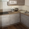 Elektroherd, Kühlschrank, Tiefkühlfach, Geschirrspüler, Mikrowelle, Geschirreinrichtung, Wasserkocher, Kaffeemaschine, Eierkocher, Besteck, Gläser