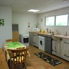 The open plan kitchen is well equipped with ample crockery and cutlery and contains a full size electric cooker, microwave, dishwasher, washing machine and fridge-freezer.