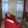 Wohnzimmer: bequeme Polstermöbel, SAT-Fernseher und Radio