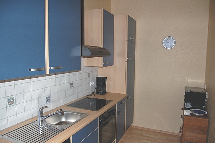 Küche: komplett neue Einbauküche mit Kühlschrank mit Gefrierfach, Herd mit Backofen, Spülmaschine, Kaffeemaschine und Mikrowelle
