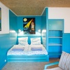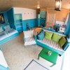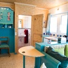Das Doppelbett ist 180 cm breit und 2m lang und liegt gemütlich in einer Nische. Esstisch, Sofa und Sessel ergänzen die Einrichtung. Der Fernseher mit CD/DVD-Spieler und WLAN lassen medientechnisch kaum Wünsche offen.