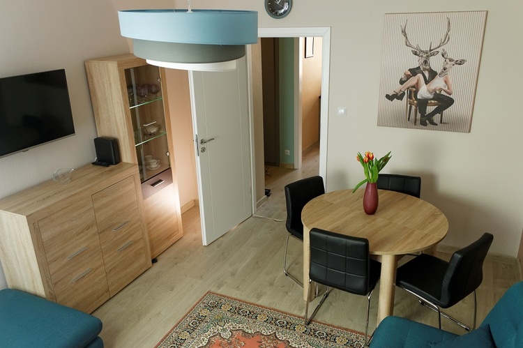 Das Apartment RELAX ist eine liebevoll eingerichtete Ferienwohnung mit einer Größe von etwa 46 Quadratmetern für bis zu 4 Personen. Es befindet sich im 1 Stock eines Mehrfamilienhauses in der Nähe von der Eissporthalle, des Freilichtmuseum Pilica und des Naturreservats Blaue Quellen.
