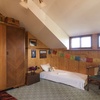 Auf dem Dachgeschoss sind drei Betten und manche Turngeräte für Kinder.
