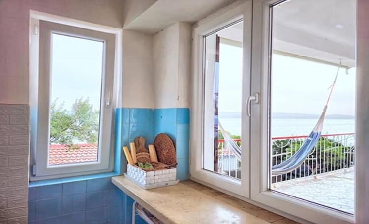 Die große Terrasse, teilweise mit Bambusstangen überdacht, lädt zum Entspannen bei einem tollen Panoramablick auf das Meer ein. Ein schöner Strand befindet sich in unmittelbarer Nähe aber zu diesem führen steile Treppen. Nutzen Sie die Lage der Ferienwohnung zwischen den beliebten Urlaubsorten Omis und Makarska und erleben Sie hautnah die zahlreichen Freizeit- und Sportangebote, sowie das reiche Gastronomieangebot.