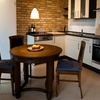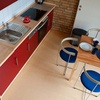 Elektroherd, Kühlschrank, Tiefkühlfach, Geschirrspüler, Geschirreinrichtung, Wasserkocher, Kaffeemaschine, Toaster, Besteck, Gläser