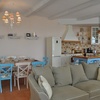 The ground floor living room is spread out on more than 50 sq. m and combines an entrance hall, open plan kitchen, dining and lounge areas. Kitchen is fully fitted with refrigerator with freezer, oven, electric hobs, microwave, dishwasher, extractor, el. kettle, microwave, coffee machine and blends modern features with old-fashioned decor. On the same level there is a wet room with washing machine. On the ground floor you will find 2 bedrooms - a twin bedroom with adjacent tiny shower room opposite the corridor and en suite double bedroom - both with direct access to the patio and the swimming pool. Upstairs are the other two bedrooms located - a twin and a double one - both with private shower room.