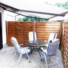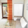 Das Schlafzimmer ist mit einem Doppelbett (180 cm x 200 cm) und einem großen Kleiderschrank/Schranksystem ausgestattet. Das Gästezimmer hat ein ausziehbares Schlafsofa (ca. 140 cm x 195 cm), einem Glastisch und neumodischen Kleiderschrank. Hier befindet sich auch der Zugang zur Terrasse mit Markise und Sitzgelegenheit.
