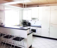 Die Wohnung bietet eine voll ausgestattete Einbauküche (Herd, Backofen, Spülmaschine, Kühlschrank, Mikrowelle, Kleingeräte), sowie ein großes Bad mit Dusche und geräumiger Badewanne.