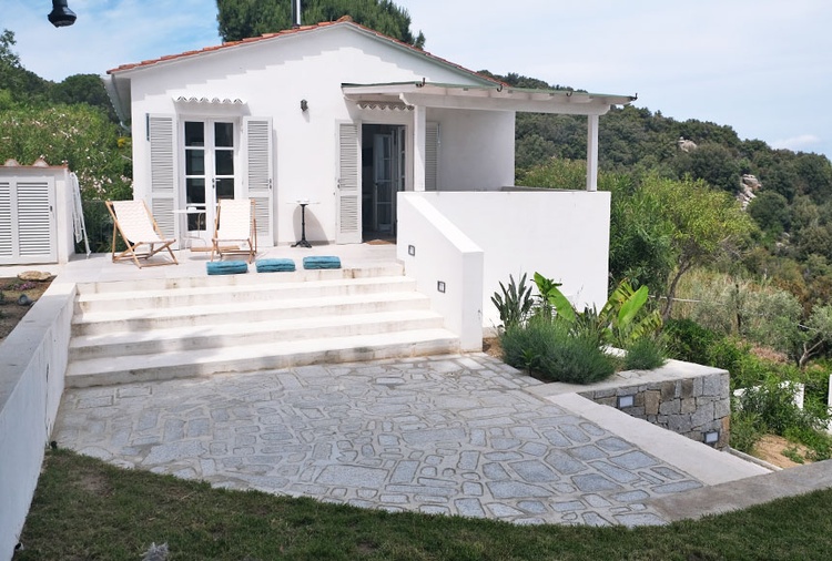 ist eine reizvolle Villa mit grossem Garten. Ein 50 m langer Fussweg von der Strassse die zum Strand führt (Sackgasse) zur Villa garantiert die ruhige Lage des Anwesens. Der Weg zum Strand betraegt zirka 5 bis 8 Minuten zu Fuss und geht ueber die antiken Treppen des Dorfes bergab. Die Villa ist aufgeteilt in zwei unabhängige entegegengesetzt liegende Wohnungen mit jeweils eigenem Eingang und eigenen Terrassen und privatem Garten. Der Privatparkplatz liegt zirka 400 m vom Haus entfernt.