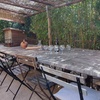 Jedes der drei Ferienwohnungen, „Das Pénéquet“, "Das Fenière “, "Die Orangeraie“, verfügt über einen eigenen kunstvollen Außenbereich, so dass die Gäste genug Ruhe und Privatsphäre haben. Ein großer Garten von 2000 m², der eine große mediterrane Artenvielfalt besitzt, bildet, gemeinsam mit einem Parkplatz für 3 bis 4 Fahrzeuge, den Außenbereich, der zur Verfügung steht.