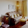 Im Wohnzimmer gemütliche Couch, Schrankbett (90 x 200 cm) Flachbild-Kabel-TV, Radio, Küchenzeile mit zwei Kochplatten,