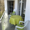 2 überdachte Balkone mit Sitzgarnitur und Sonnenschirm.