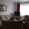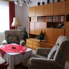 Wohnzimmer, Sat-TV, handgearbeitete Naturholzanbauwand, Couchgarnitur