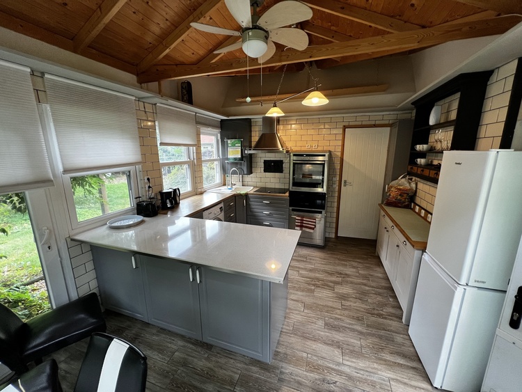 Schickes Ferienhaus mit 2x DZ, verschiebbare Einzelbetten. Komplette Küche mit Kühlschranken, Tisch, Stühle , Duschbad; Schränke bieten Stauraum.