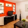 Moderne 1-Raum-Wohnung mit kombiniertem Wohn-/Schlafraum mit Doppelbett, gemütlicher Sofaecke, TV und Musikanlage mit CD, komplett eingerichtete Einbauküche, Bad mit Wannenbad. WLAN steht Ihnen kostenfrei zur Verfügung.
