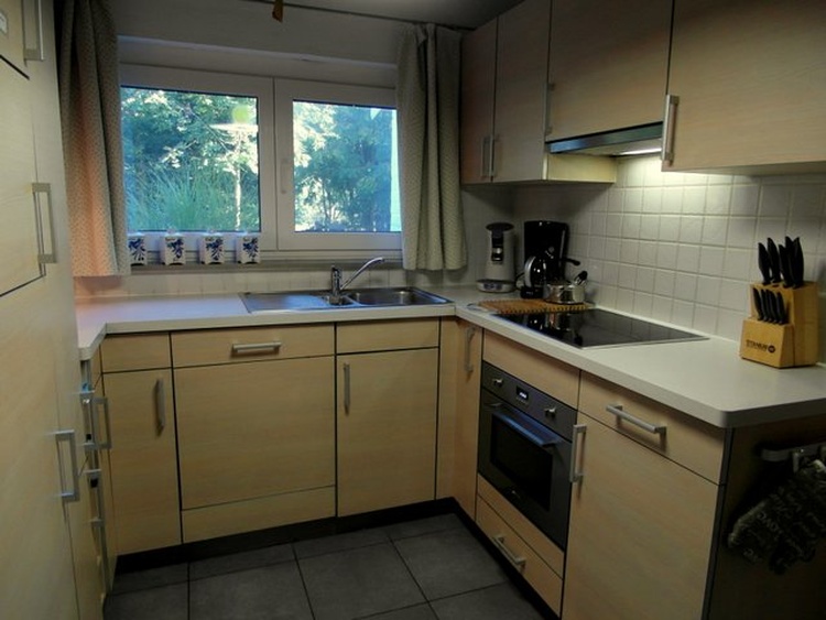Elektroherd, Kühlschrank, Tiefkühlfach, Geschirrspüler, Mikrowelle, Geschirreinrichtung, Wasserkocher, Kaffeemaschine, Toaster, Besteck, Gläser