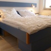 Ein Doppelbett im Schlafzimmer und ein Bettsofa im Wohnzimmer.