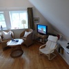 Im Obergeschoss befindet sich ein Elternschlafzimmer sowie ein weiteres Schlafzimmer mit 3 Betten und TV, das Bad mit Dusche und in der Fledermausgaube eine gemütliche Leseecke.