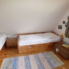 Im Obergeschoss befindet sich ein Elternschlafzimmer sowie ein weiteres Schlafzimmer mit 3 Betten, das Bad mit Dusche und in der Fledermausgaube eine gemütliche Leseecke.