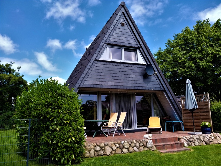 Unser gemütliches Zeltdachhaus (Bilder 1-5), Str. der Häfen 499, bis 6 Personen, ist ca. 75 qm groß, Grundstück eingezäunt.
