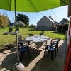 Das Haus hat einen Wohn-Eßraum mit amerikanischer Küche, 2 Schlafzimmer mit 2 Doppelbetten (160x200 und 140x200), ein kleines Duschbad, eine Abstellecke mit Waschmaschine. Auf der Terrasse und im riesigen Garten stehen Obstbäume, ein Grill, Gartentisch mit Stühlen, Sonnenschirm und Sonnenliegen.