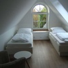 Sie liegen beide im Obergeschoß + Spitzboden eines Dreifamilienhauses und bestehen jeweils aus gemütlichem Wohnbereich, Küchen- und Eßecke, einem Schlafzimmer mit Doppelbett, einem weiteren Schlafzimmer mit 2 Einzelbetten im Spitzboden, Bad mit Dusche sowie separatem Gäste-WC.