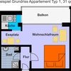 Unsere Appartements können wir Ihnen in drei verschiedenen Größen 31 qm, 34 qm und