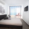 1 Doppelbett, SAT-TV u. Klima. 1 Badezimmer mit ebenerdiger Dusche, WC, Waschbecken, Fenster.