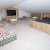 Treppenaufgang zur Empore mit: grossen Relax-Sofas, SAT-TV, Klima und ein Ausziehbett (1,50 x 2,00m).