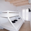1 Schlafzimmer mit Etagenbett (unten 1,40 m Breite und oben Einzelbett), Klima, Einbauschrank, kleiner Schreibtisch, SAT-TV, Terrassentüre mit elektrischem Rollo zum hinteren Terrassenbereich.