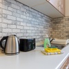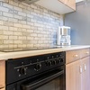 Elektroherd, Kühlschrank, Tiefkühlfach, Mikrowelle, Geschirreinrichtung, Wasserkocher, Kaffeemaschine, Toaster, Besteck, Gläser