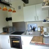 - Separate Küche, Kühlschrank/TK-Fach, Herd mit 4 Kochplatten und Backröhre,