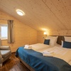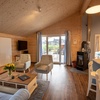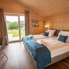 Die "Skipperhäuser" Typ (A plus) verfügen über zwei Schlafzimmer mit Boxspring-Doppelbetten, wovon eines mit einem 2. Fernseh-Gerät ausgestattet ist und einen direkten Zugang zur Terrasse bietet. Dieser Haustyp bietet außerdem eine große Küche mit Essecke und einen offenen Übergang zum Wohnbereich mit Kaminofen.