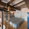 room with a double futon bed, mezzanine, 1.63 meters high at the highest point, reachable by a spiral staircase