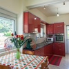 Elektroherd, Kühlschrank, Tiefkühlfach, Geschirrspüler, Geschirreinrichtung, Wasserkocher, Kaffeemaschine, Toaster, Besteck, Gläser