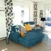 Wohnzimmerbereich mit Couchgarnitur und Sitzhockern, SAT-TV mit grossem Flachbildschirm.