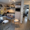 Elektroherd, Kühlschrank, Mikrowelle, Geschirreinrichtung, Wasserkocher, Kaffeemaschine, Toaster, Besteck, Gläser