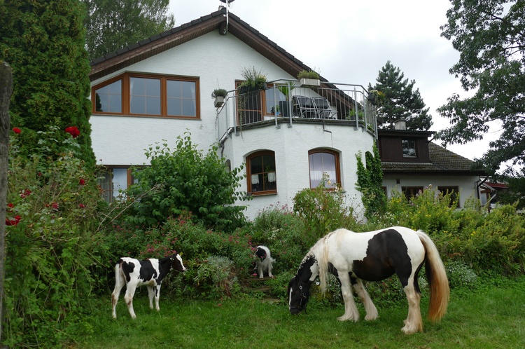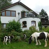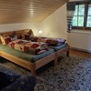 Abgeschlossene 2-Zimmer Ferienwohnung im ersten Stock mit zwei Balkonen und phantastischer Aussicht. Heizung und Warmwasser aus regenerativen Energien. 80 Milchkühe, dazu Kälber, Hühner, Katzen, Bienen, Pferde und Hofhund. Mithilfe bei Stallarbeiten ist möglich, auch Reiten.
