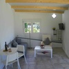 B.) Eine Ferieneinheit ca. 50 m² großes Doppelzimmer mit eigener Gartenterrasse und vergleichbarer Einrichtung steht ca. 15 Meter an der Westseite des relativen großen Grundstücks im Anschluss der Westterrasse).