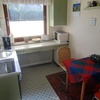 Elektroherd, Kühlschrank, Tiefkühlfach, Mikrowelle, Geschirreinrichtung, Wasserkocher, Kaffeemaschine, Toaster, Eierkocher, Besteck, Gläser